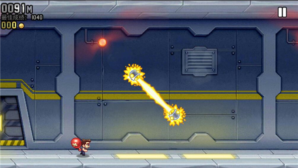 2、操作技巧:长按一下屏幕,让Barry飞到画面的中间位置,即上面空余的地方和下面空余的地方相同。然后每隔0.5秒触摸一下屏幕,保持Barry不会下降,一直处于画面的中部。如果中部出现电火链,应根据其他电火链或导弹的位置,迅速把Barry调整到画面的上部或下部,待中部的电火链消失后再回归中部。
