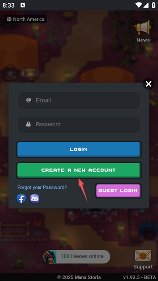 1、在本站下载安装马纳斯托里亚游戏并打开,点击“CREAT A NEW ACCOUNT”,创建新的账号,也可以点击“GUEST