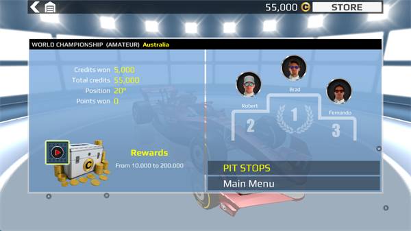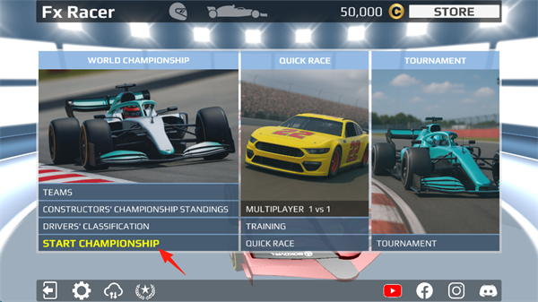 1、在本站下载安装真实方程式赛车模拟游戏并打开,选择世界锦标赛,快速比赛以及锦标赛等模式,新手建议选择第一个模式,点击“START