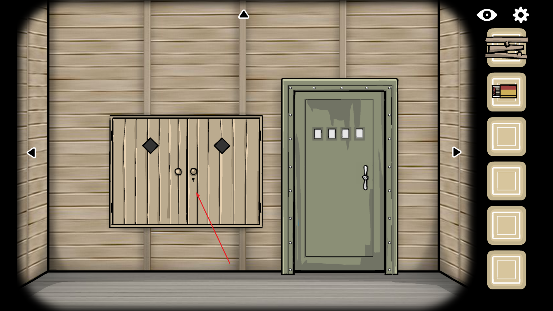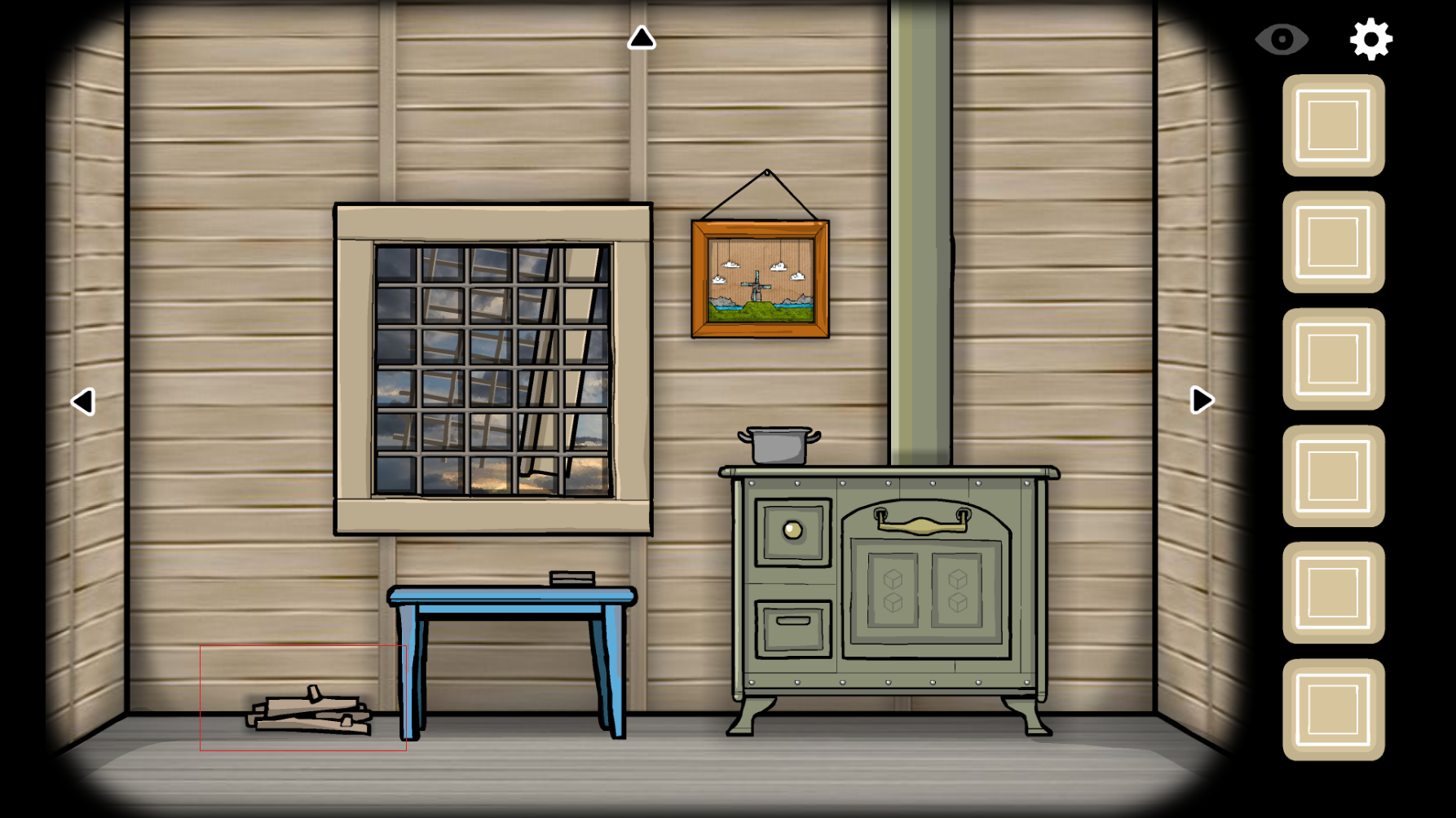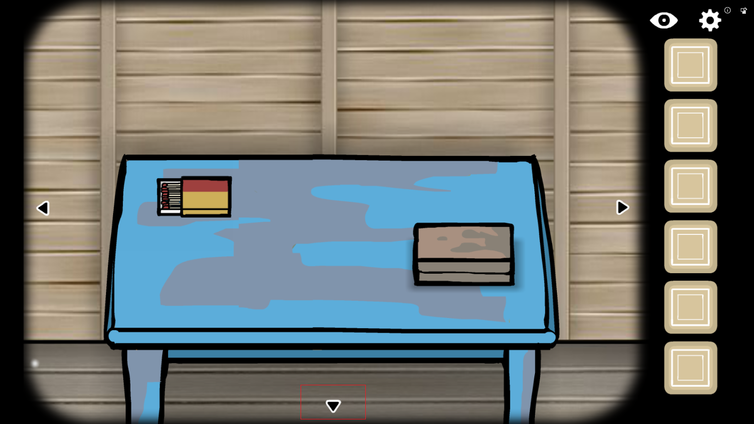 2、在蓝色的桌子上,有一盒火柴,点击一下桌子即可查看,点击火柴,放进你的背包