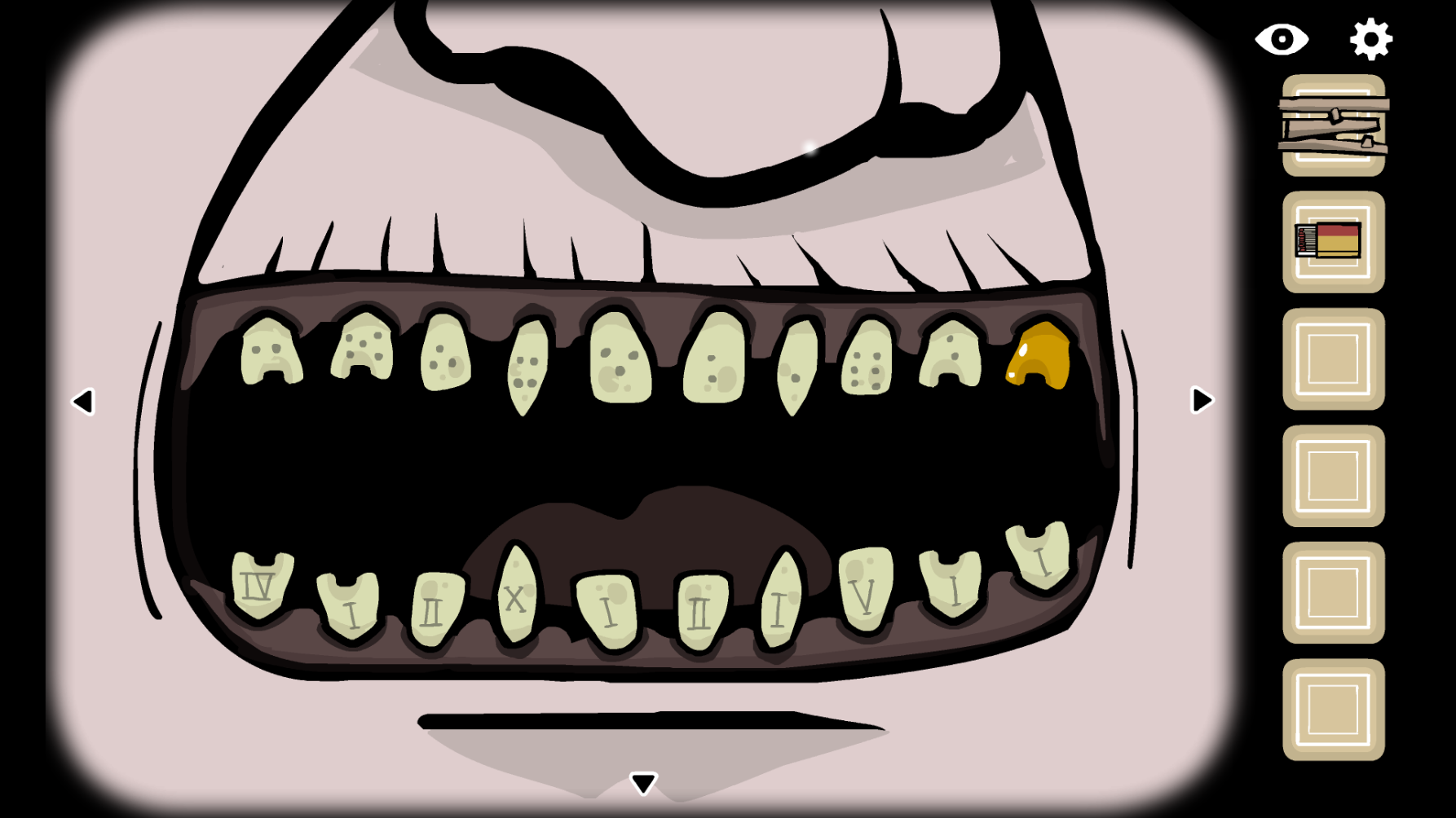 8、我们需要得到金牙,依次点击(6、4、X)(5、V)(Ⅳ、3、1)(2、I、I)(3、Ⅰ、Ⅱ)(2、Ⅱ)点完之后就可以得到金牙了
