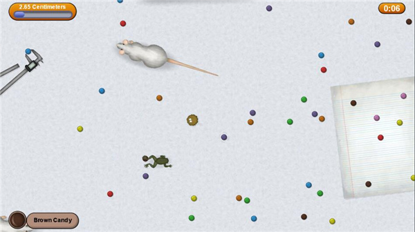 5、玩家需要注意的一点是,在游戏过程中,如果你被比你大的物体碰到的话,是会减小你的体积的。所以玩家在寻觅美食时,一定要注意避开这些庞然大物,以免让自己遭殃。