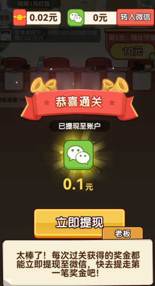 奖励系统:游戏中积累的奖励可以兑换为红包,方便提现到微信,提升游戏的吸引力。