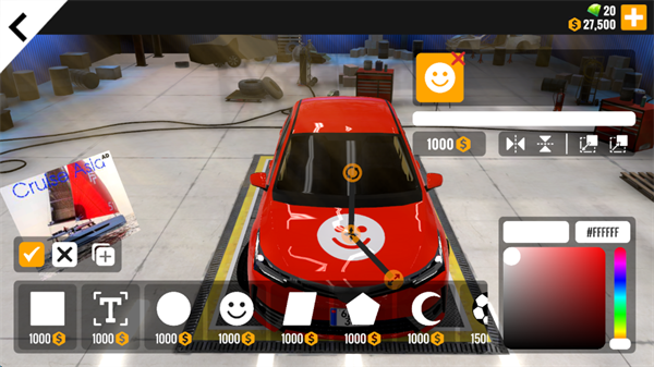 2、自定义汽车的颜色,调整,扰流板或车牌。