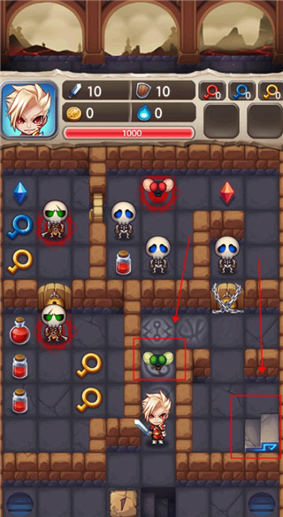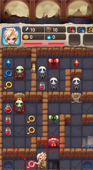 3. 深度数值博弈:战斗结果由攻防属性差精准决定,需计算每次战斗的收益与损耗,钥匙、血瓶等资源需合理规划,考验逻辑推理能力。