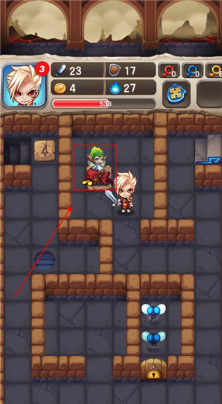 3、我们需要做的是要前往楼梯,路上会有一些怪物拦路,我们可以点击怪物将其斩杀