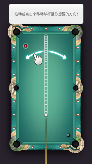 1、在本站下载安装无限八球台球之王游戏并打开,通过滑动屏幕来移动球杆的方向,亦可以通过直接点击来控制球杆的方向。