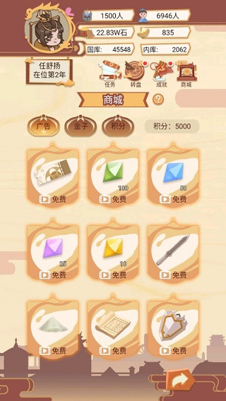 1、官员奏折:在官员奏折可以处理各类奏折,可以获得国家经济收入。