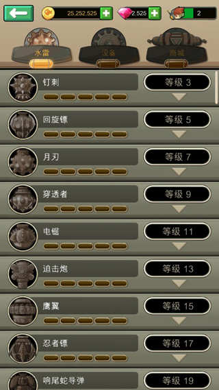 游戏中除了十分讲究操作以外,水雷和设备的培养也是游戏的关键所在。