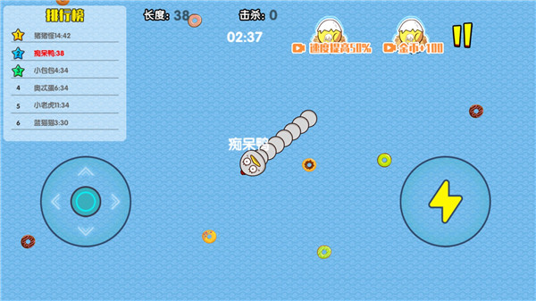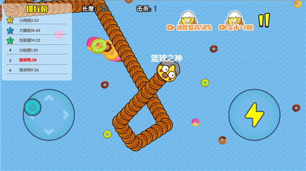 4、保命期:打到后期差距更大,不过蛇蛇们都会收敛一些开始保护自己的战果,而那些战绩很差或者想要拼一把的家伙则会用生命来进攻!我们也想着再去吃多少能量了,绕个圈圈保护好自己,吃一些零散的能量等着游戏结束就好。