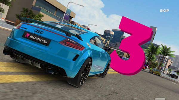 2、游戏开始前会有一段动画,展示赛车的全貌,点击右上角可跳过;