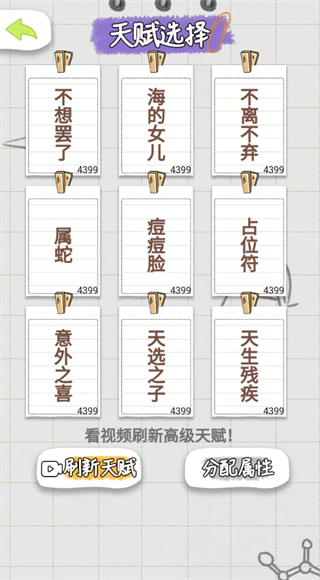 3、选择好天赋后分配好属性点点击开始人生即可。