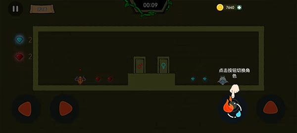 2、小编以单机模式为例,点击右下角的按钮,可以控制切换冰与火角色,开始冒险。