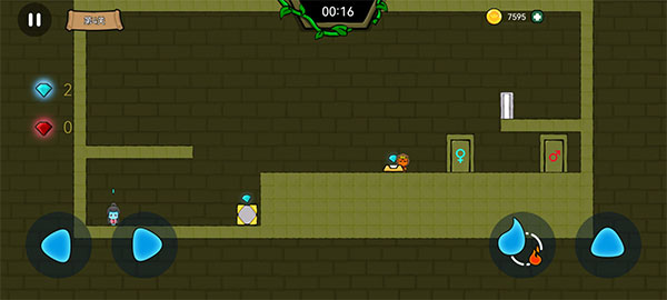 5、每个关卡都有一个大门,fireboy红色标示门,watergirl蓝色标志门,找到并抵达就可以通往下一关卡。