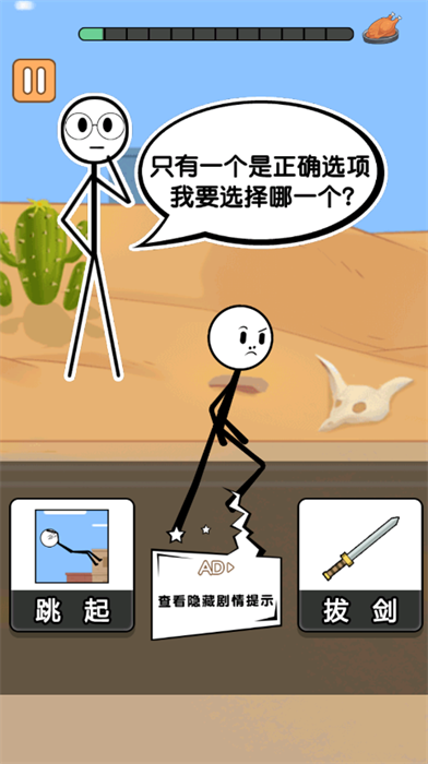 在闯关的过程中火柴人要通过各种选项去选择正确的来获取胜利,才能解锁下一关的剧情来继续闯关。