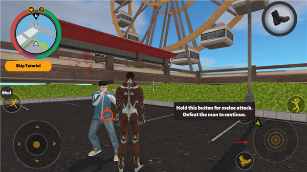 2、在近战攻击时按住右下方按钮,并打败男人继续