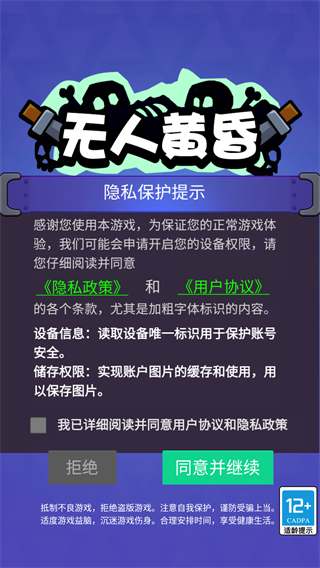 1、首先下载安装本游戏,进入游戏后玩家需要先同意游戏的隐私保护提示,点击同意并继续即可进入游戏;