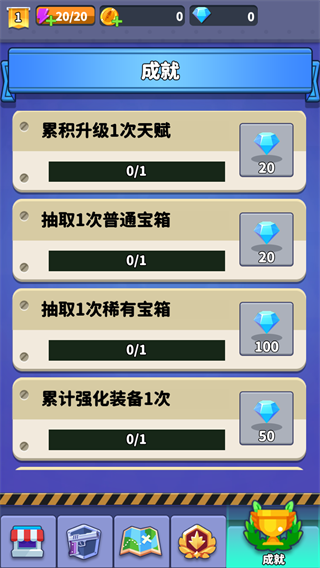 4、玩家完成成就可以获得钻石,使用钻石可以在商店内购买宝箱,开启获得道具装备;