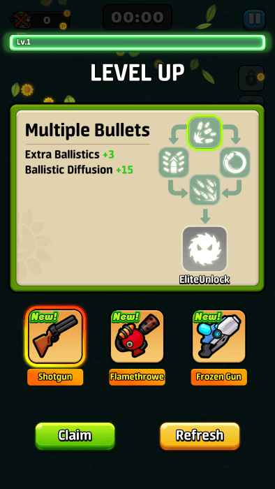 当自己升级的时候可以重复的获得武器,就能解锁更多的天赋,增强实力了。