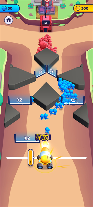 2、按住屏幕发射小兵记住一定要对着x数越大的放。