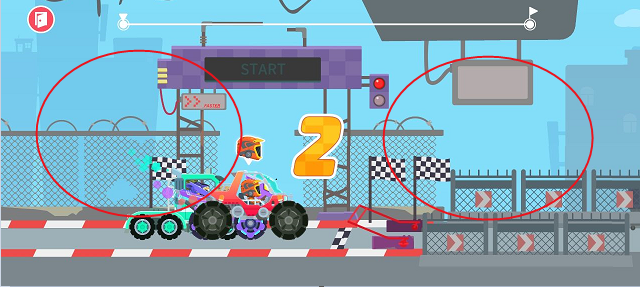 2、进入游戏之后自动开始第一次的比赛,长按手机屏幕的右边,就是加速前进,左边就是停车。