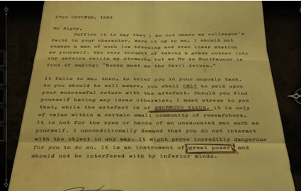 3、鬼气森森的信件,最后给了大家一句大实话,(我不是这所房子里唯一的鬼魂。)真是太吓人了。读完信件会得到一个奇怪但是很重要的东西,眼镜。