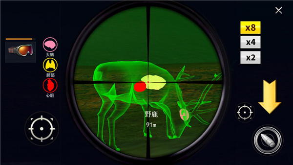 5、点击左上的红外眼镜可以准确的打击目标身体。