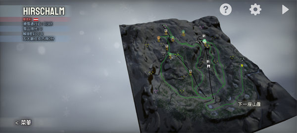 5、当我们成功征服一座山峰后,可以获得滑雪通行证同时解锁下一座山峰,每一座山峰都是不同的地形地貌,所以难度也会有所不同。