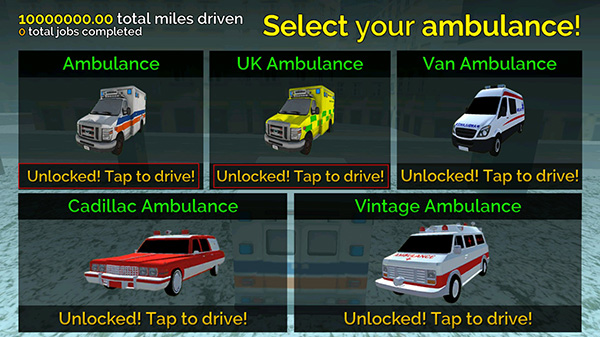 2、游戏已经修改为解锁全部救护车,玩家可以随意挑选救护车。