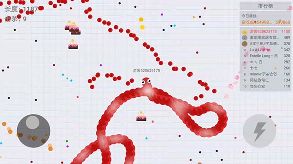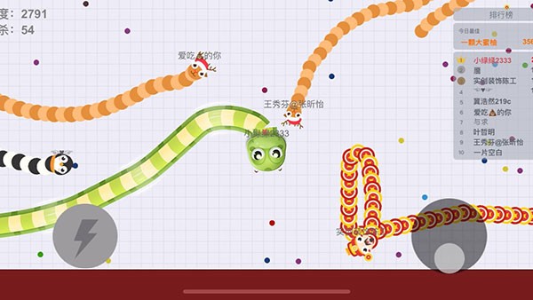 当你的长度足够,就可以在地图上实现以大欺小的虐杀了。你可以把其他小蛇圈在你的肚子里,等他自己撞死,轻松获得击杀和豆豆。