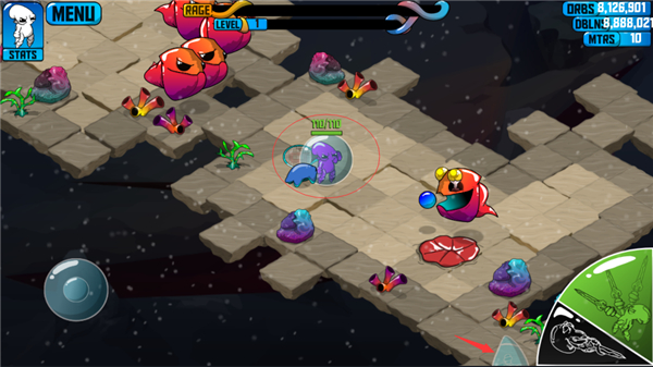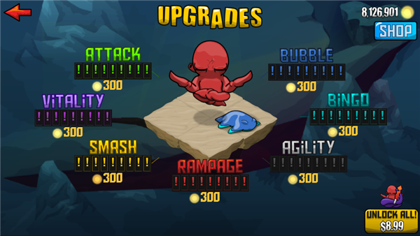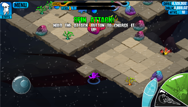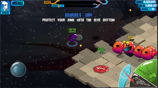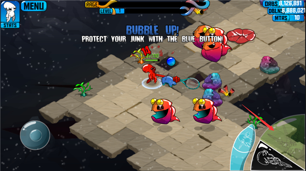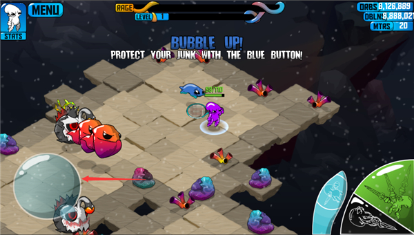 狂暴魔法人是一款横版动作格斗手游,以深海世界为背景,讲述呆萌章鱼主角手持奇葩武器闯荡海底的大乱斗故事。游戏采用双手操控模式,左手控移动、右手掌攻击,搭配四种特色技能,玩家需灵活走位躲避怪物攻击,拾取掉落武器与元素资源强化战力。深海场景布满珊瑚、水草等元素,随机刷新神秘商人和呆萌宠物小弟,击败怪物可升级提升血量,虽阵亡后等级重置极具挑战性,但拳拳到肉的打击感与脑洞武器带来满满乐趣。