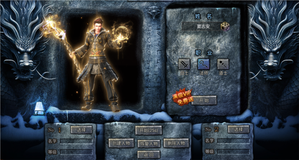 进入游戏后优先选择心仪的区服。点击服务器列表会展示当前开放战区,选定区服即可开启征程。创建职业涵盖战、法、道三大经典系别,性别无法选择。
