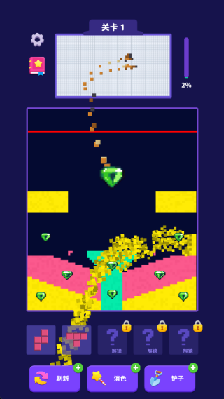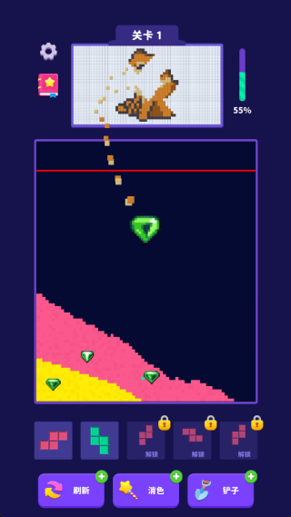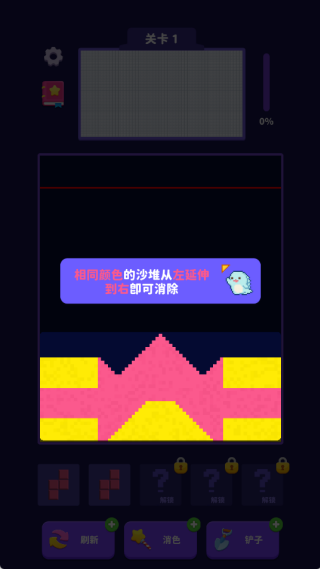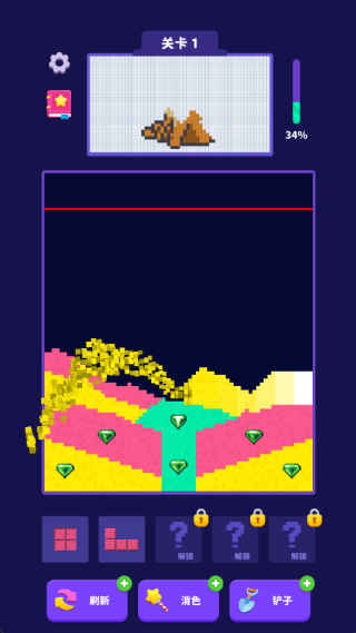 1、流沙块动态设计让消除过程更富变化性,砖块下落时带来柔和的视觉反馈。