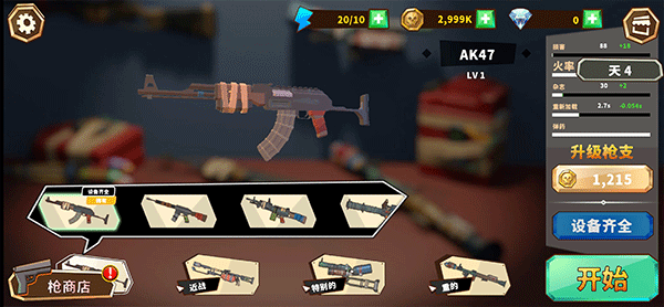2、点击枪商店,可以在这里购买各种枪械,并且可以对枪械进行升级;