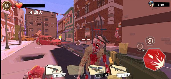 2、10多种不同的武器,从手枪到突击步枪再到超级武器一应俱全,玩家不要害怕行尸走肉,勇敢的战斗吧;