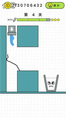 3、根据每一关不同的地形和情况来画线,一笔画让水流进入玻璃杯中,看看你能挑战到哪里。