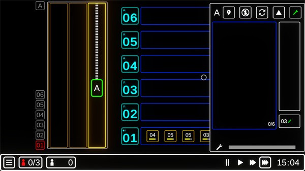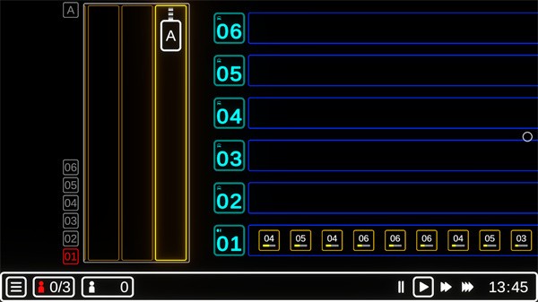 4、通过循环按钮,玩家可以切换到手动操作模式,在此相模式下,所有行程都只会执行一次,避免不必要的行程。在循环行程状态下,可以通过自动化升级来让电梯自动跳过一些没必要的行程。此外,在电梯操作台处显示的行程,可以拖动以调整顺序,也可以单击去除一个行程。通过方向按钮可以更改行程循环的方向。
