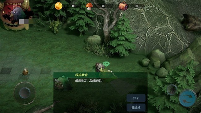 1.利用左下角轮盘操控小鸡移动,去到上方有对话框的角色中,长按右下角标识可唤起对话