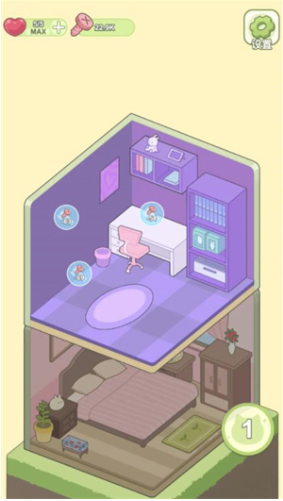 3. 高自由度装修:解锁海量家具、装饰素材,支持自由拖动摆放、调整角度,可打造专属风格小屋,还有主题房间挑战,满足玩家的创意表达与审美需求。