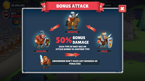 在这里值得注意的是,兵种直接会有克制关系,所以在玩家攻城略地之时,要合理的搭配阵容。