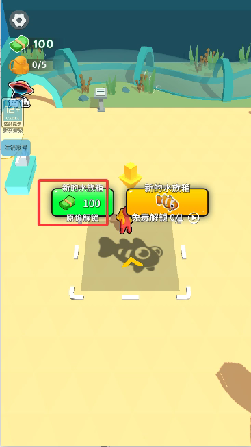 3、水族箱里没有鱼,我们需要自己去抓鱼。