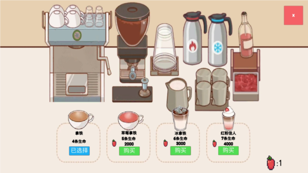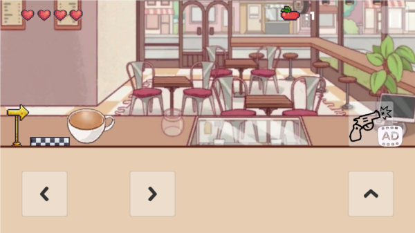 3、选择第一个模式,你需要操控咖啡进行闯关,收集一路上的草莓,左边是进行前后移动,右边是跳跃。