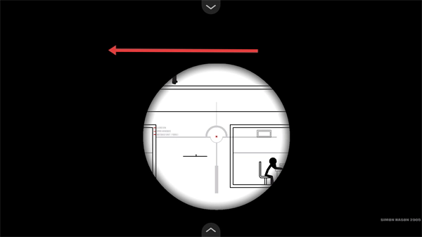 2、把狙击视角调整到门口区域,锁定在这里出现的目标角色,做好执行击杀操作的准备。