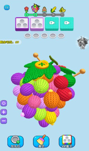 2、上方会随机的出现各种颜色的盒子,当盒子中放满了三个毛线团之后就会消除,并出现新的盒子。