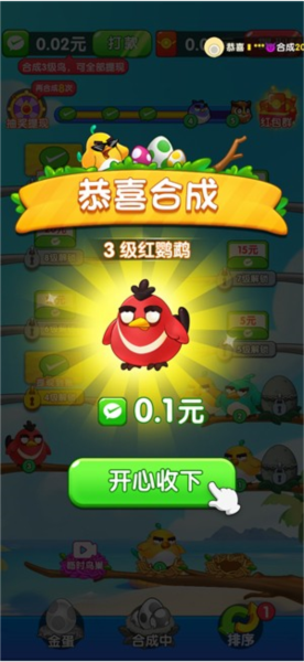 3、合成高等级小鸟就能获得奖励,不同等级的小鸟获得的奖励是不同的,等级越高奖励越多。