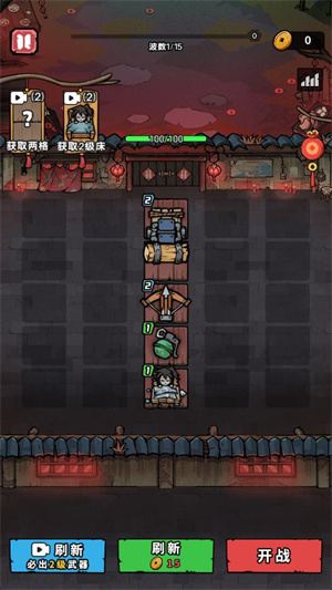 2、进入关卡后你需要将初始武器放在对应位置,相同的武器可以合并提升等级。