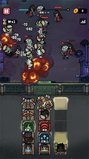 6、不断消灭每一波的敌人来坚持下去,击败最终boss就可以赢得胜利。
