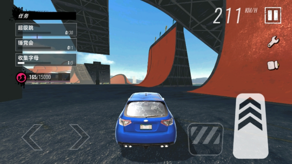 4、通过左侧按钮控制车辆移动的方向,右侧控制油门刹车,还可以切换不同的驾驶视角哦。