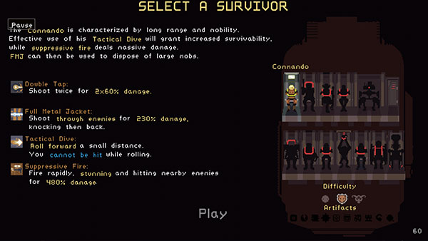 2、进入角色选择,初始阶段只解锁了一个角色,点击下方的“Play”开始游戏。