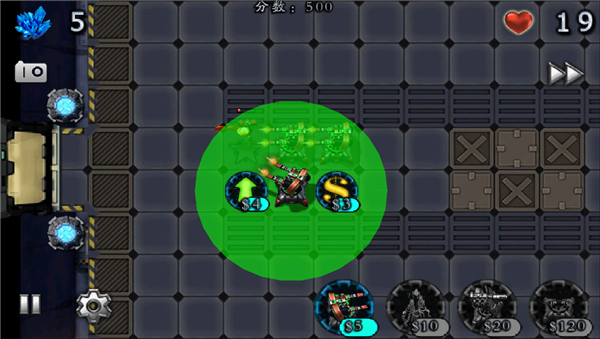 7、进入游戏左上角类似金币,金币可以让你购买防御塔,点击相应的防御塔进行放置,如下图;